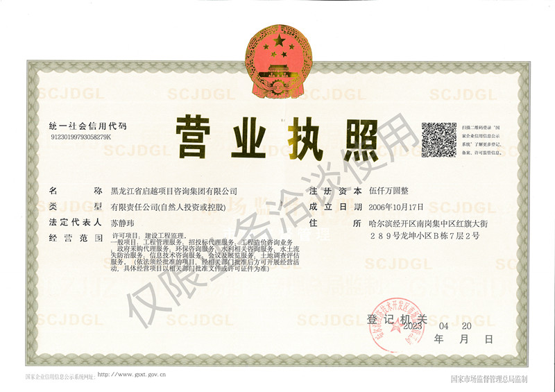 黑龍江省啟越項目咨詢集團有限公司,成立于2006年10月17日,具有中華人民共和國住房和城鄉(xiāng)建設部頒發(fā)的工程招標代理機構甲級資質(zhì)、工程造價咨詢企業(yè)甲級資質(zhì);黑龍江省住房和城鄉(xiāng)建設廳頒發(fā)的房屋建筑工程監(jiān)理資質(zhì)及市政公用工程監(jiān)理資質(zhì);黑龍江省司法廳頒布的司法鑒定許可證;中國政府采購網(wǎng)登記注冊的政府采購代理機構。我公司是專業(yè)從事工程類招標代理服務、政府采購項目類招標代理服務、工程造價咨詢服務、工程造價司法鑒定服務、工程監(jiān)理服務及建設項目全過程跟蹤管理的工程技術服務咨詢企業(yè)。